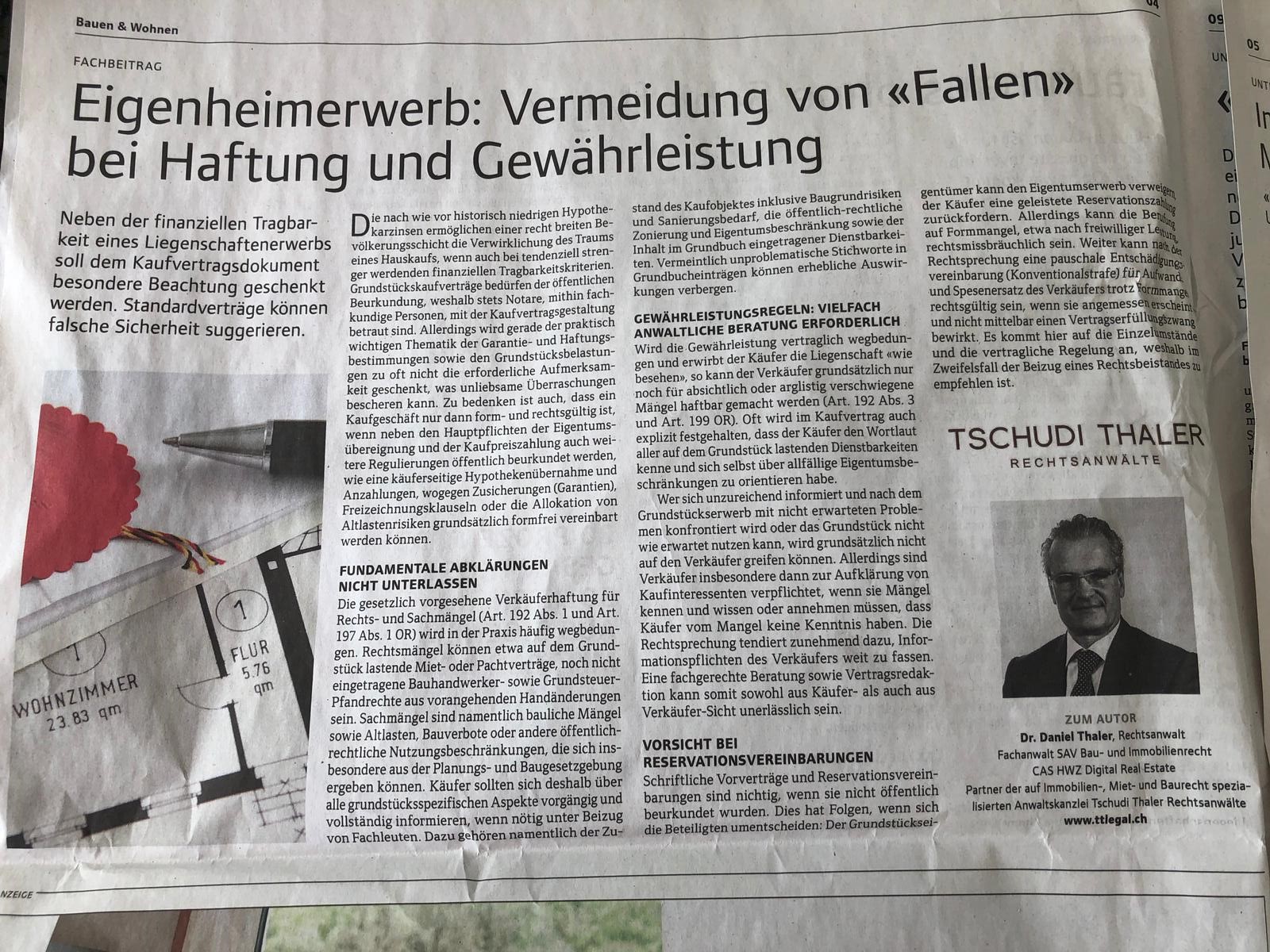 - Eigenheimerwerb: Vermeidung von "Fallen" bei Haftung und Gewährleistung (PDF), in: Bauen & Wohnen, SonntagsZeitung, 21.04.2019